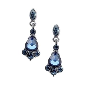 With their vintage look, these hematite tone drop earrings are ideal for dressing up but they will even work with the most causal of outfits. A marquise shape simulated sapphire crystal is used to start the earrings on their posts.